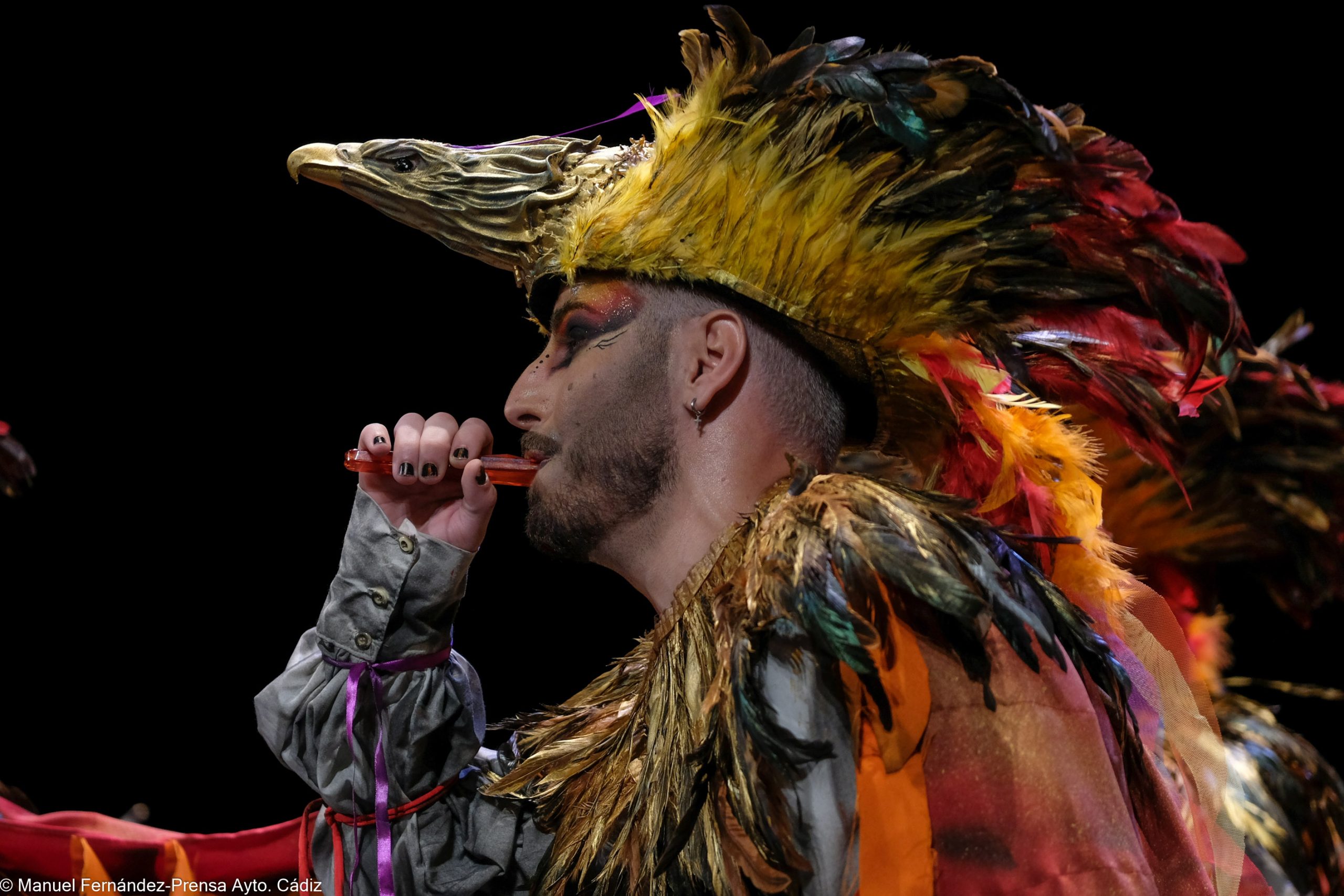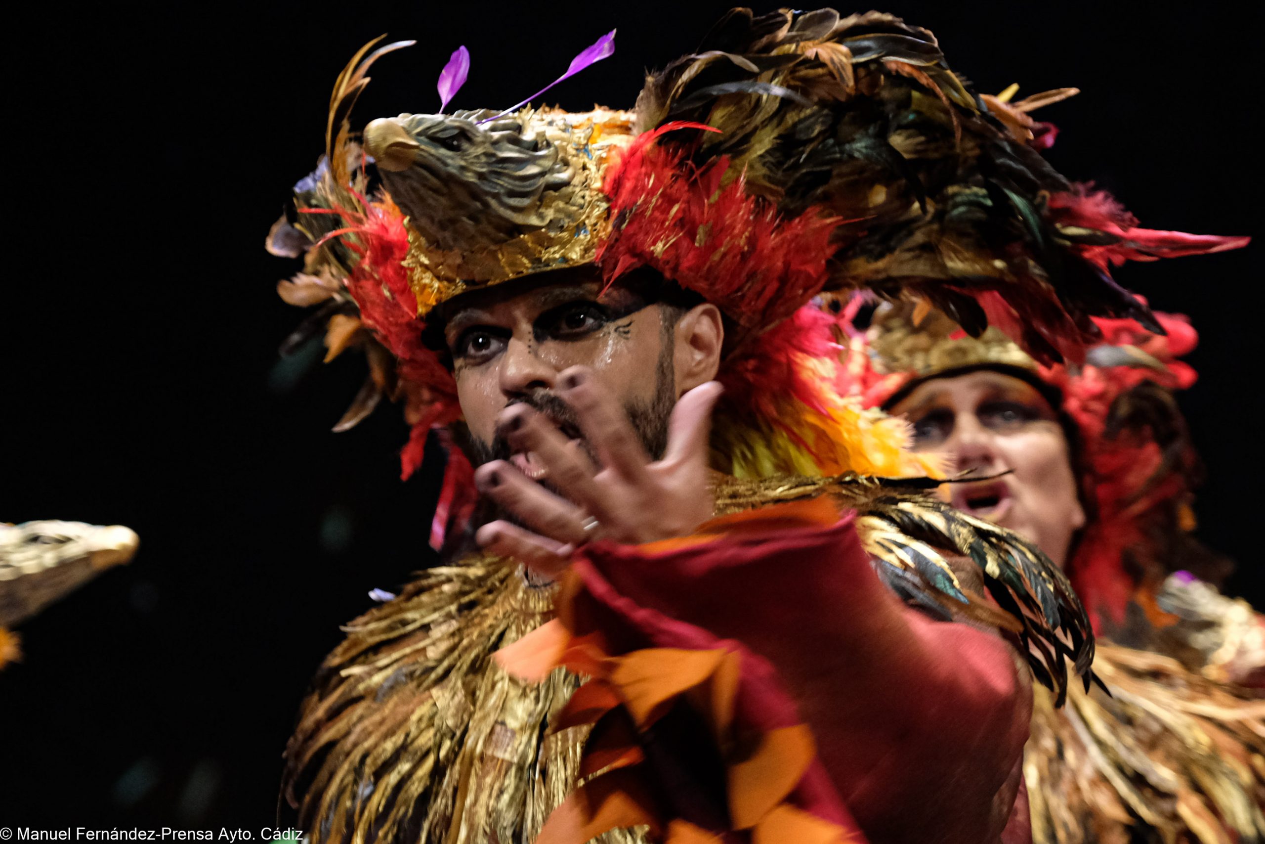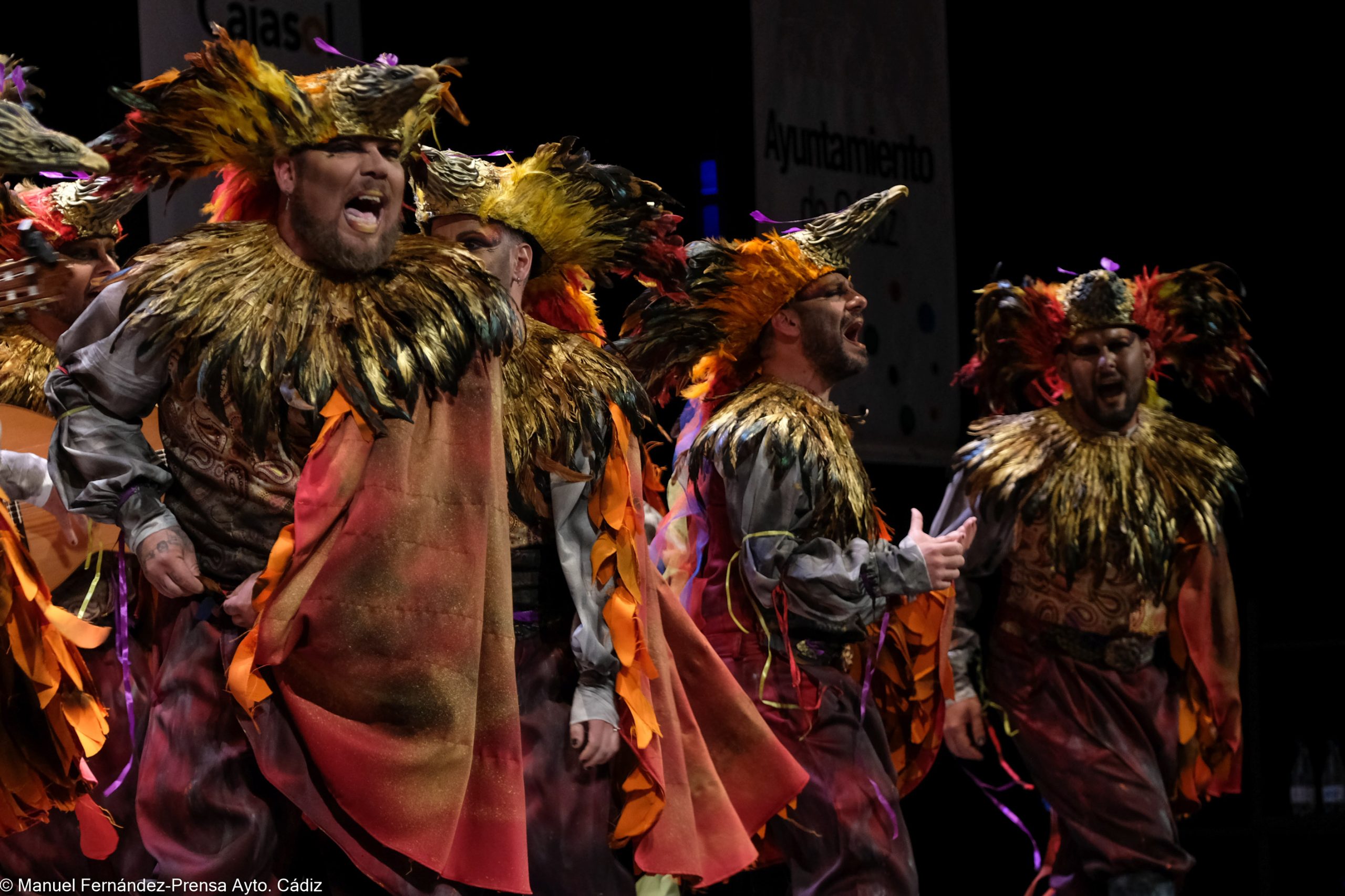 Desde Algeciras llegan hasta el templo gaditano convertidos en Ave Fénix llegan estos comparsistas con un tipo muy vistoso.