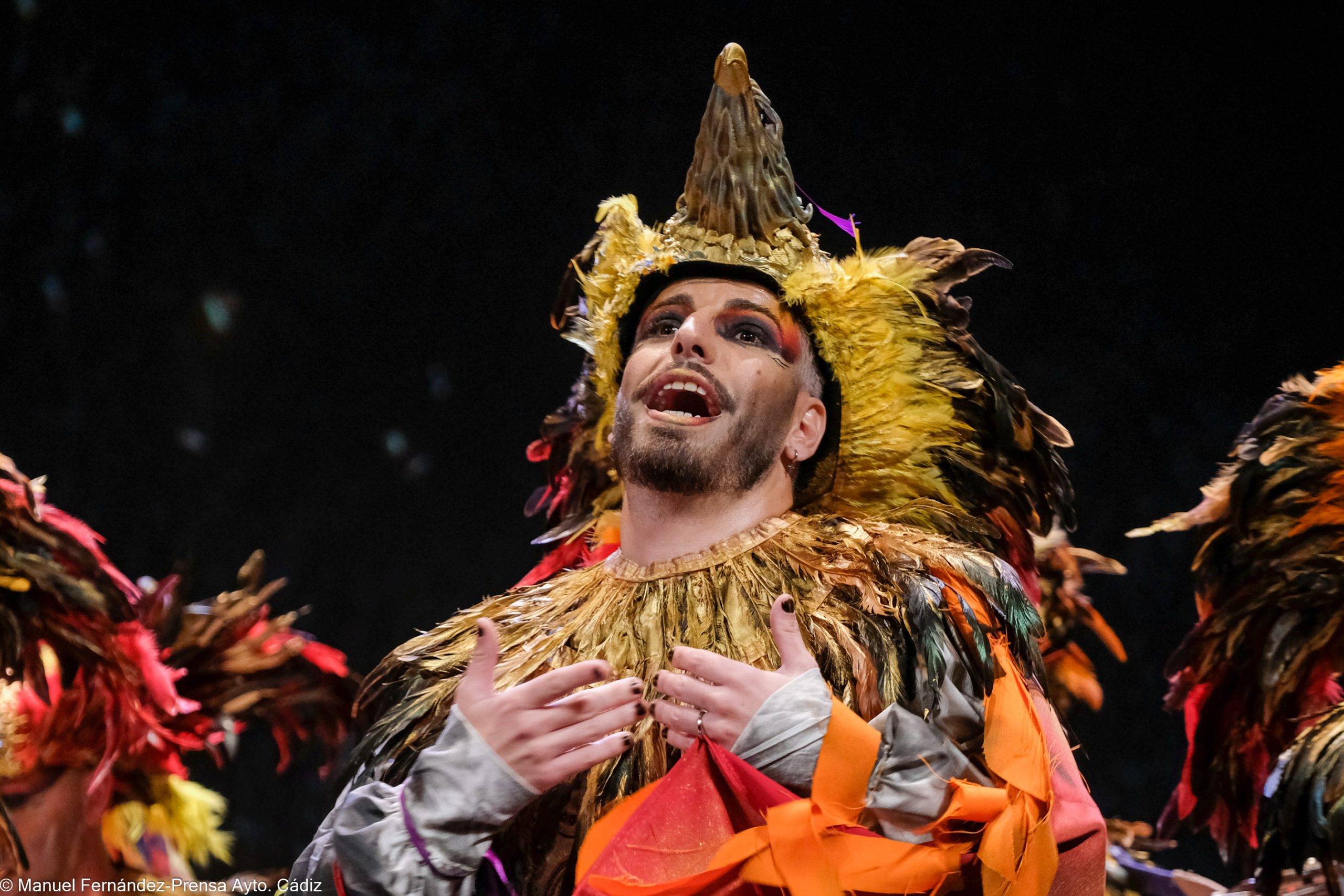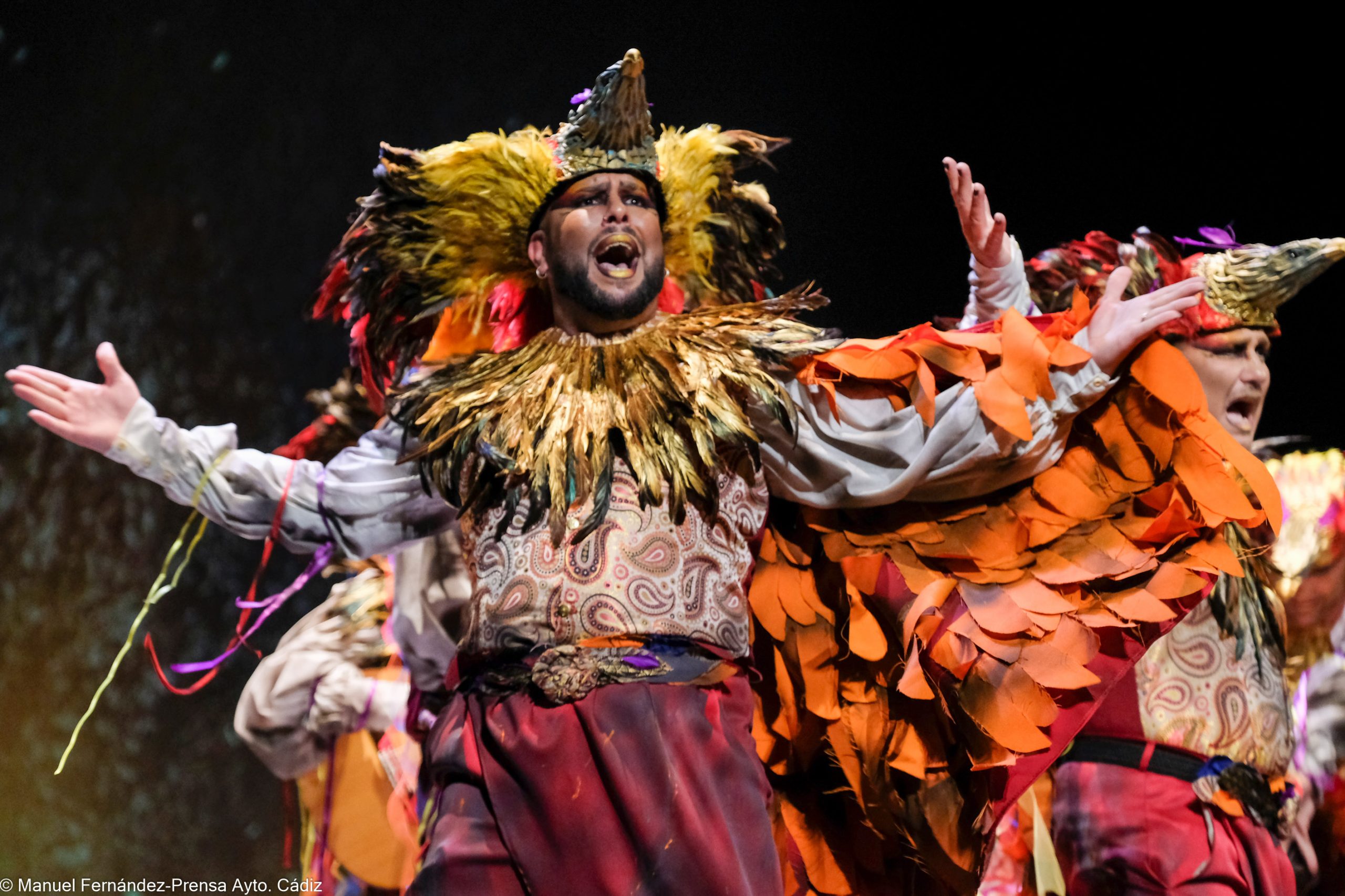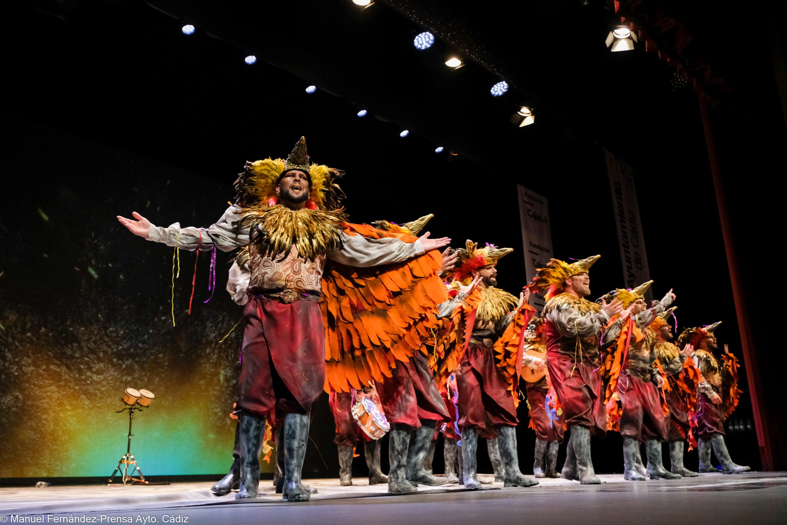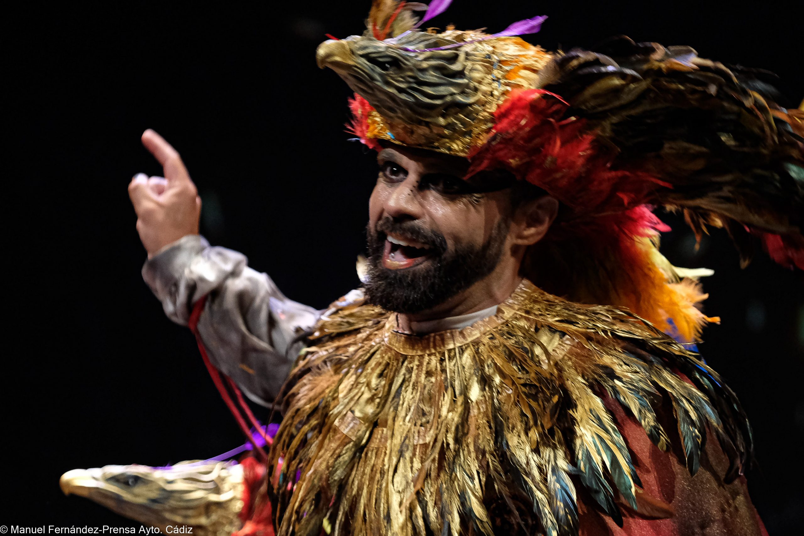 Desde Algeciras llegan hasta el templo gaditano convertidos en Ave Fénix llegan estos comparsistas con un tipo muy vistoso.