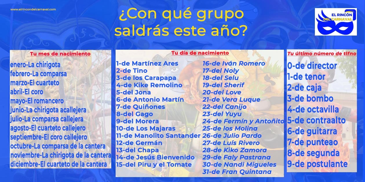 Sea como sea, lo que es seguro es que vendrá con un repertorio inédito, del que todo buen carnavalero deseará escuchar esas nuevas letras críticas, esos pasodobles que llegan al alma y esos cuplés en los que el mismo autor sabe reírse de sus problemas. Un grupo renovado y con el que pondrá de algún modo, comienzo a este atípico Carnaval.